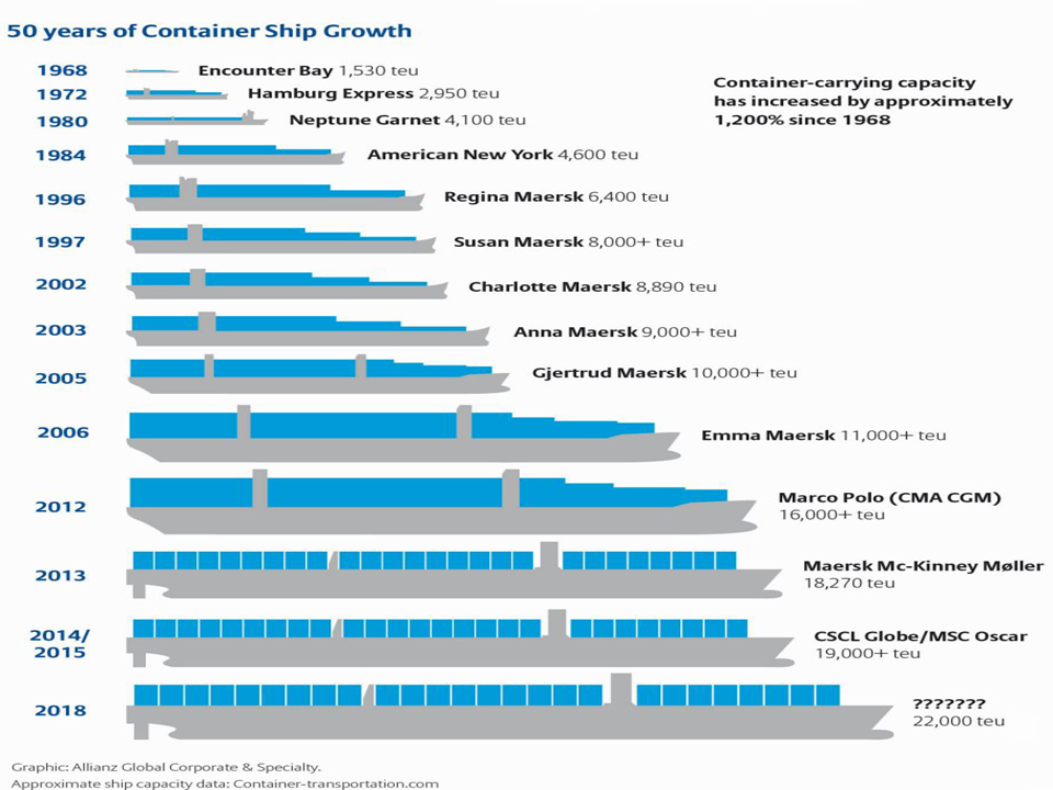Summarising below the growth of ship’s size, we are eyeing the future of even larger sized vessels.