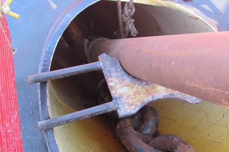 The starboard anchor (weight approx. 10 Metric tons) which  had not been used for some time , was stuck !!