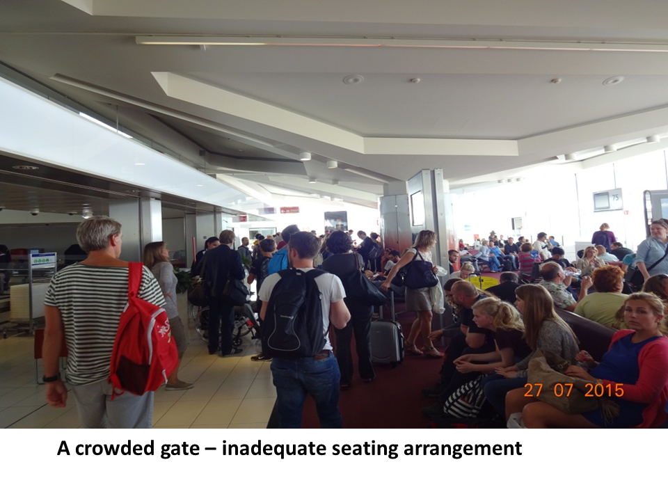 There are 2 terminals which are connected by a sky train, A passenger needs to check the gates and the corresponding terminal quickly in order not to miss the flights. The Security levels are maintained in the same way as any USA Airports.